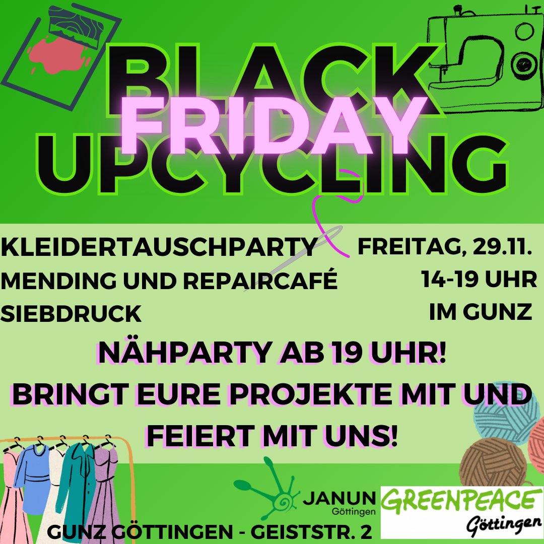 Greenpeace Göttingen und JANUN veranstalten eine Upcycling-Party und ihr seit alle eingeladen. :) Wir beiten sowohl eine Kleidertauschparty an, als auch eine Reparaturwerkstatt für Kleidung. In unserem Mending und Repaircafé zeigen wir dir, wie du Löcher, Risse und Flecken reparieren und verschönern kannst und deine frisch-getauschten Klamotten für dich passend umnähst.